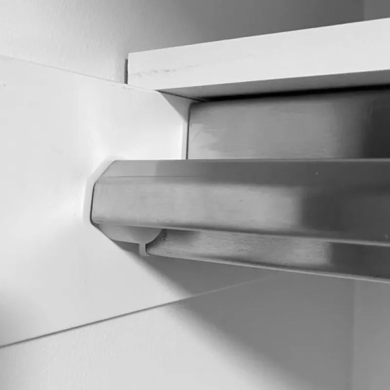 Made of 22 gauge stainless steel, the Safety Closet Bar mounts under the closet shelf and runs wall to wall for a secure installation.